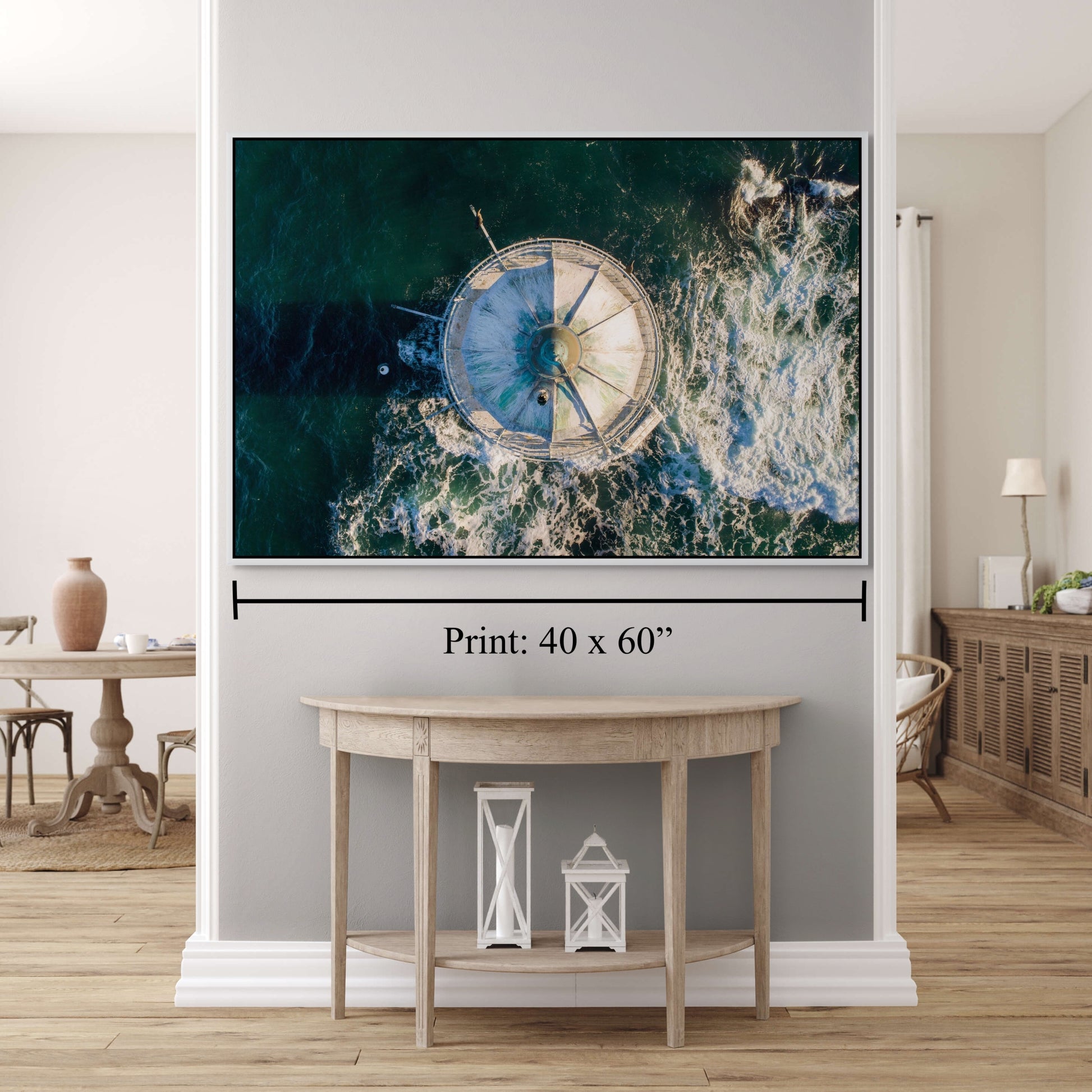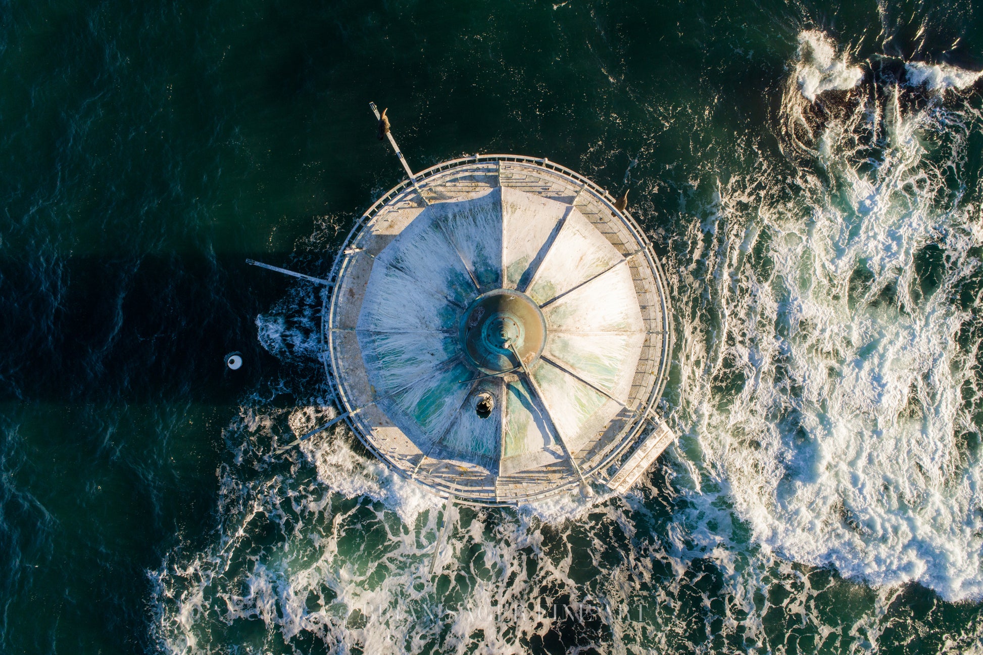Suspended above the Atlantic, Minot Light captures one of New England’s most iconic beacons from a rarely seen perspective. Photographed off the coast of Scituate, Massachusetts, this image reveals the perfect geometry of the lighthouse surrounded by the rhythmic pulse of the sea. The circular form of the tower contrasts beautifully with the shifting textures of the ocean—each wave telling its own story of strength and endurance.