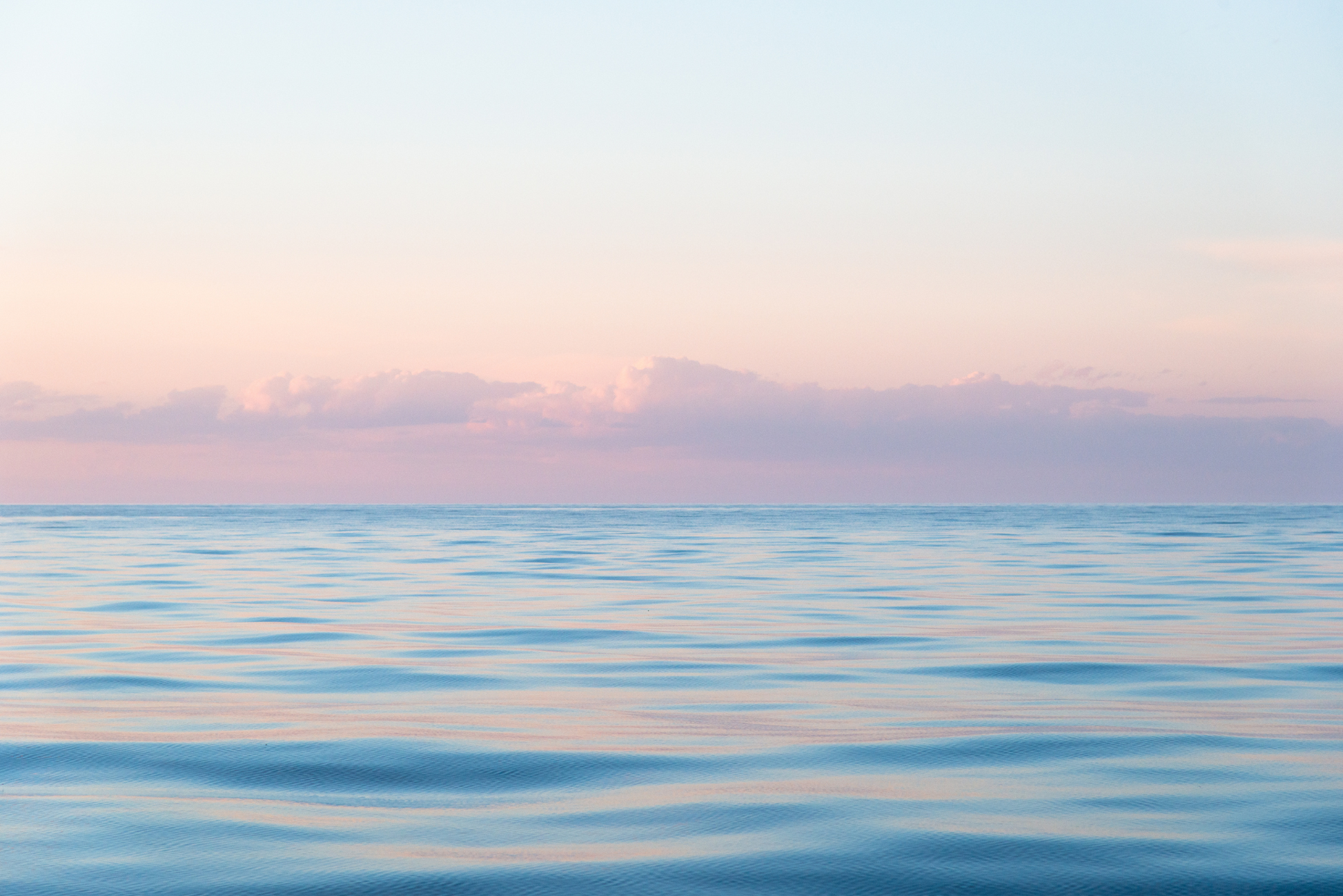 Clouds in the horizon are illuminated by the rising sun over The Race at the tip of Long Island. (Long Island Sound, June 2020)