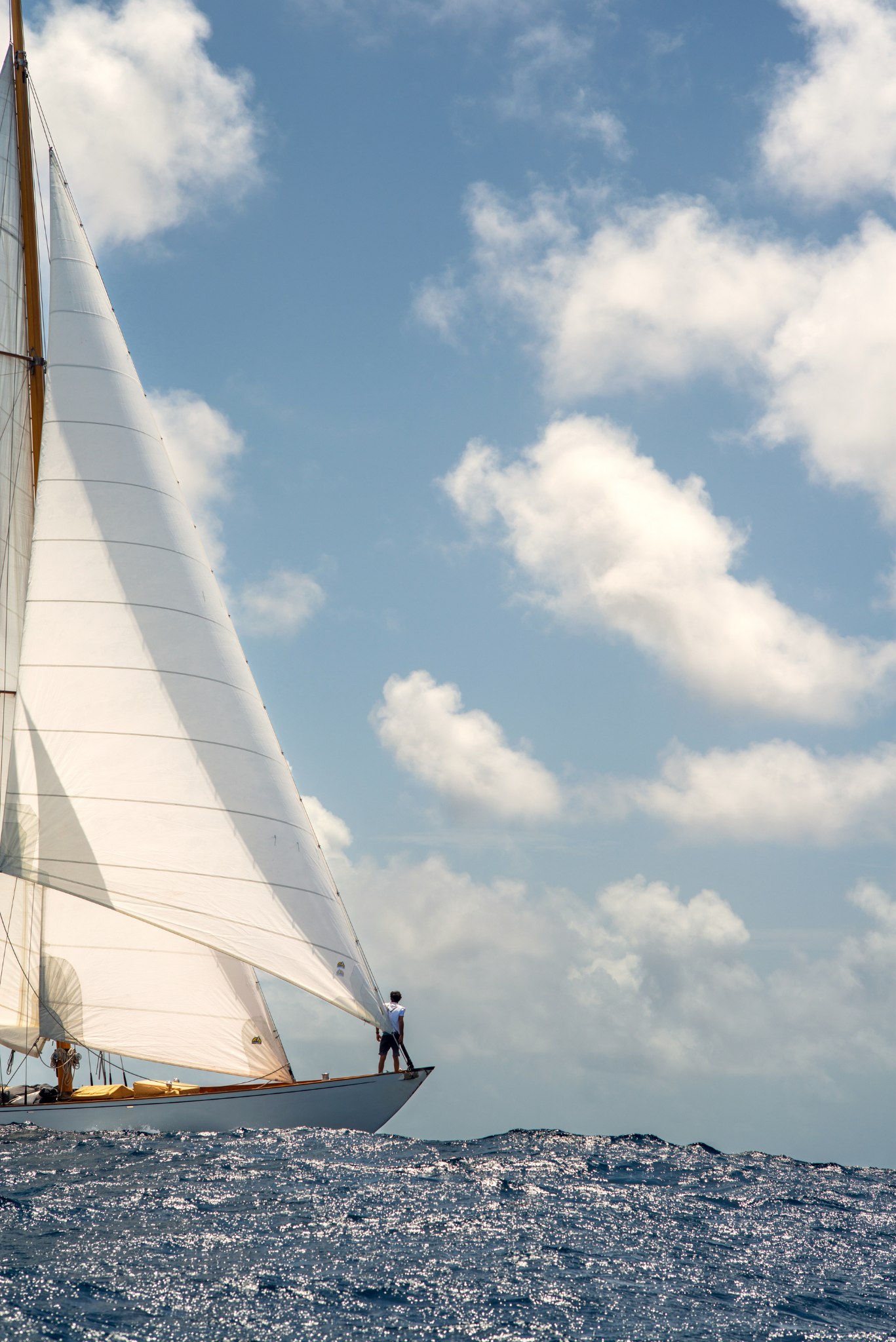 The Blue Peter's Bowman stands strong and proud in anticipation of the Antigua Classic Yacht Regatta. (Antigua, April 2015).