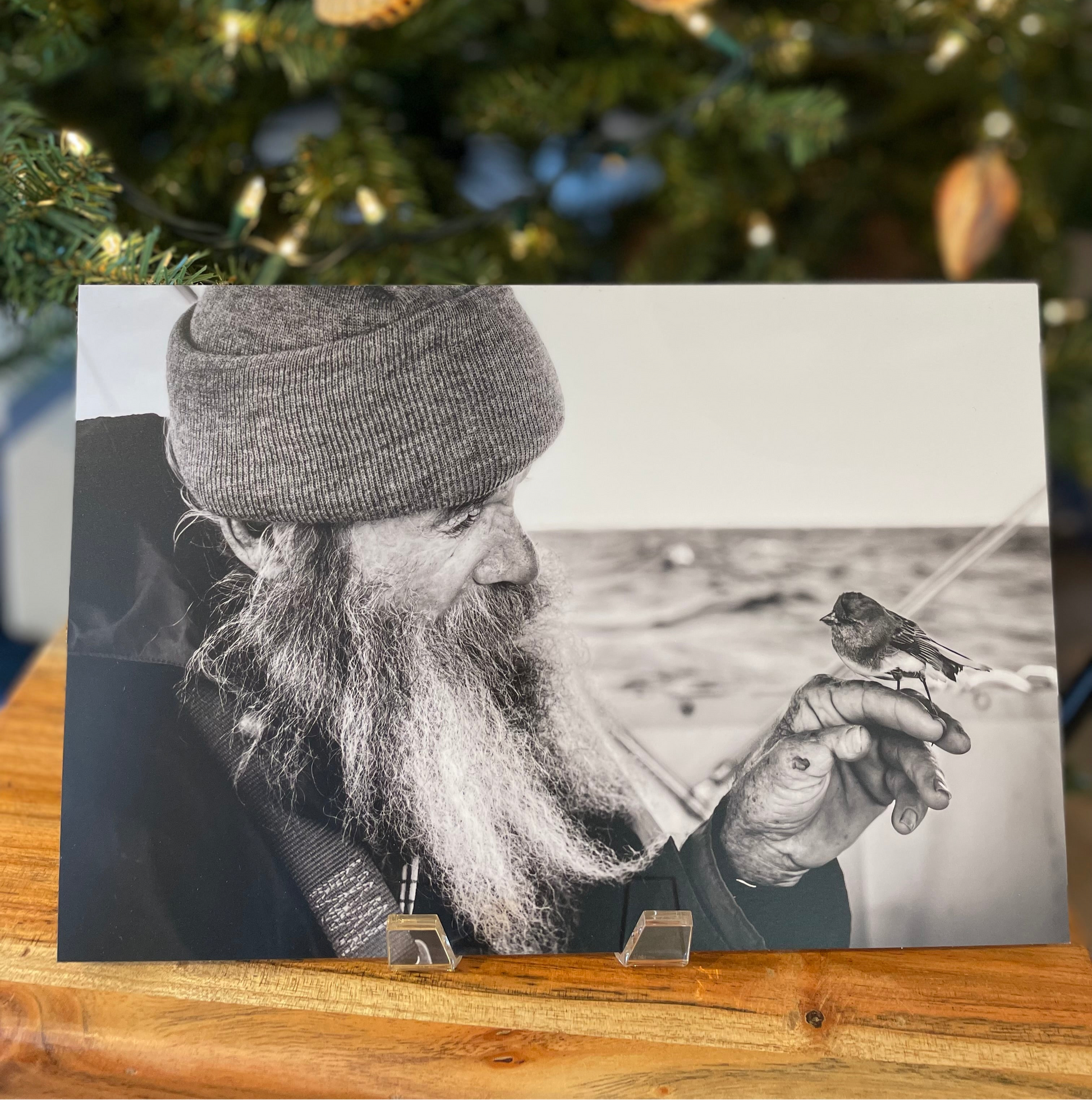 This archival print mounted to aluminum brings exceptional detail and vibrancy to Captain Tim's weathered features and the delicate details of the bird. The durable metal print is resistant to scratches and fading, ensuring a lifetime of enjoyment.