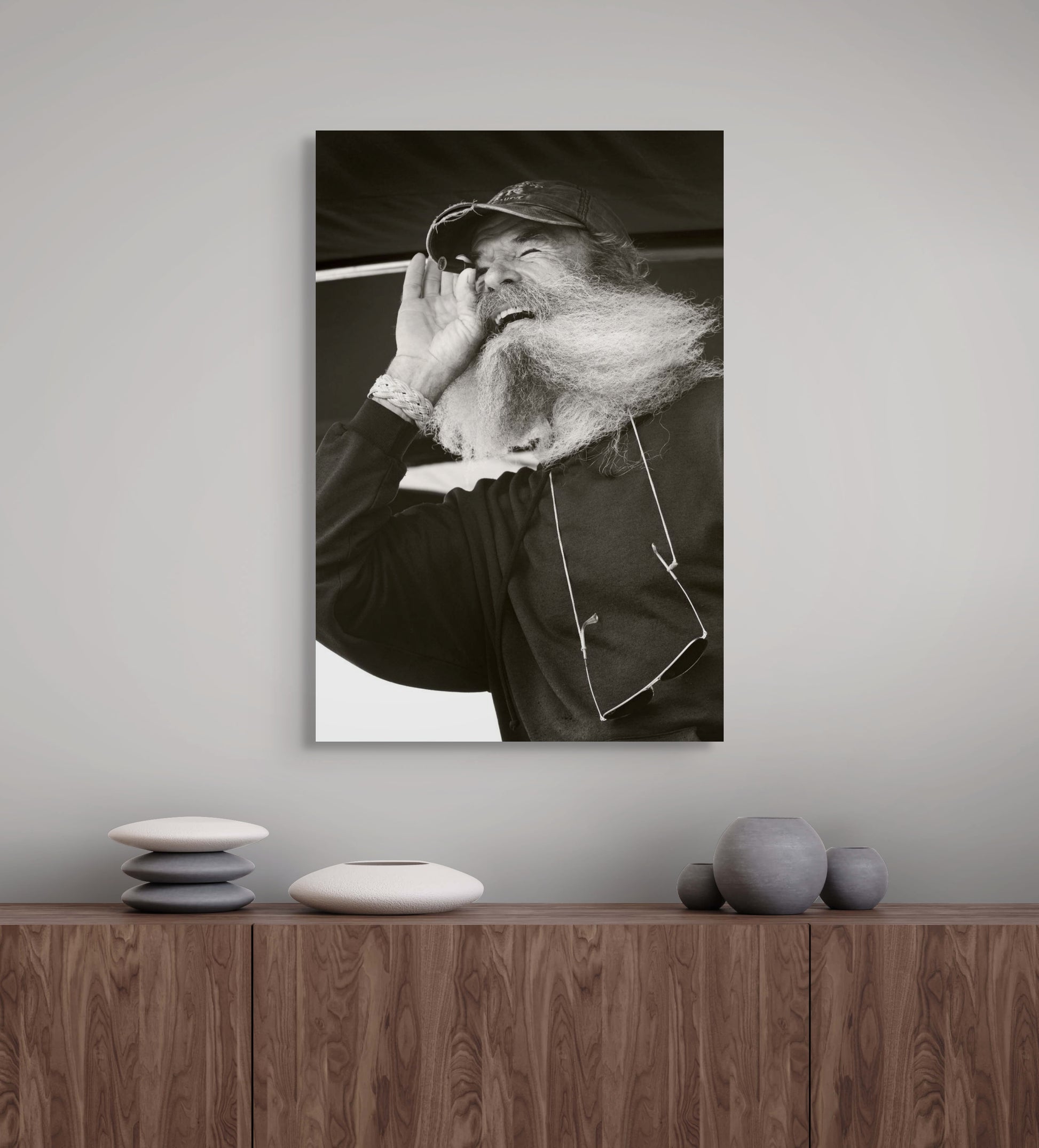 In this quiet moment, Captain Tim searches the horizon for a buoy using a small handheld telescope that once belonged to his father, a commander in the Royal Navy. The photograph holds layers of history, lineage, and lived experience, where seamanship is passed not through instruction alone, but through objects, habits, and instinct. (Nantucket Sound, 2014)